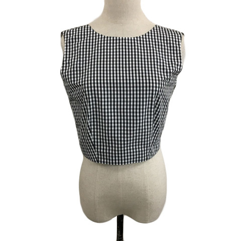 > スナイデル SNIDEL カットソー ビスチェ ラウンドネック リボン ギンガムチェック ノースリーブ F 黒 白 ブラック ホワイト レディース