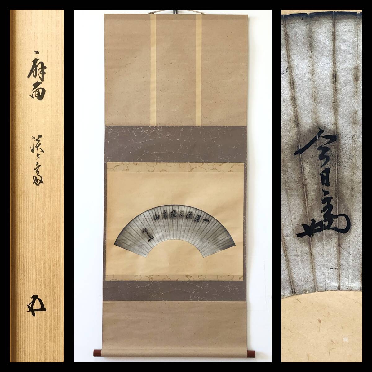- 【真作】W543【 淡々斎宗室/碩叟 裏千家14代家元 扇面『一條流水繞青山』識箱:15代家元 鵬雲斎】掛軸/書/墨蹟/紙本