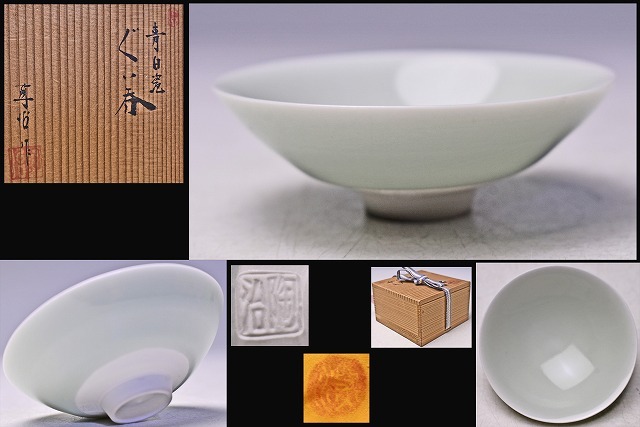 - 深見陶治 ★ 青白磁 ぐい呑 ★ 盃 ★ 共箱 ★ 鋳込み技法 ★ シンプルで品の良い佇まい ★ 深見すえはる ★ 青白磁 ★ ぐい呑 ★ 酒器