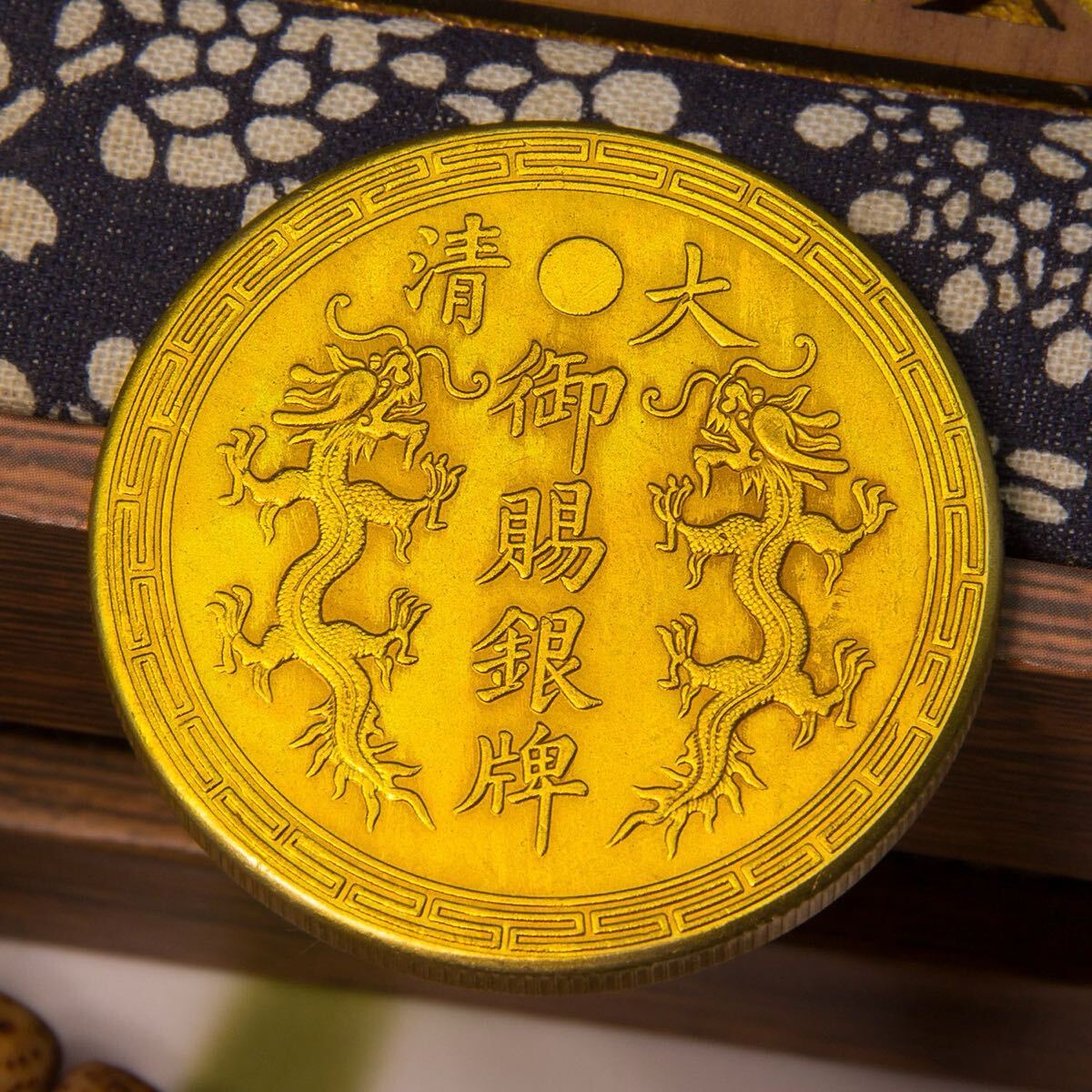 > 中国大清 清朝 福州船政成功 御金牌 レリーフ双龍彫刻 金 古銭 コイン 骨董品 収蔵品 大型金貨 金貨 コレクション 中国 古銭
