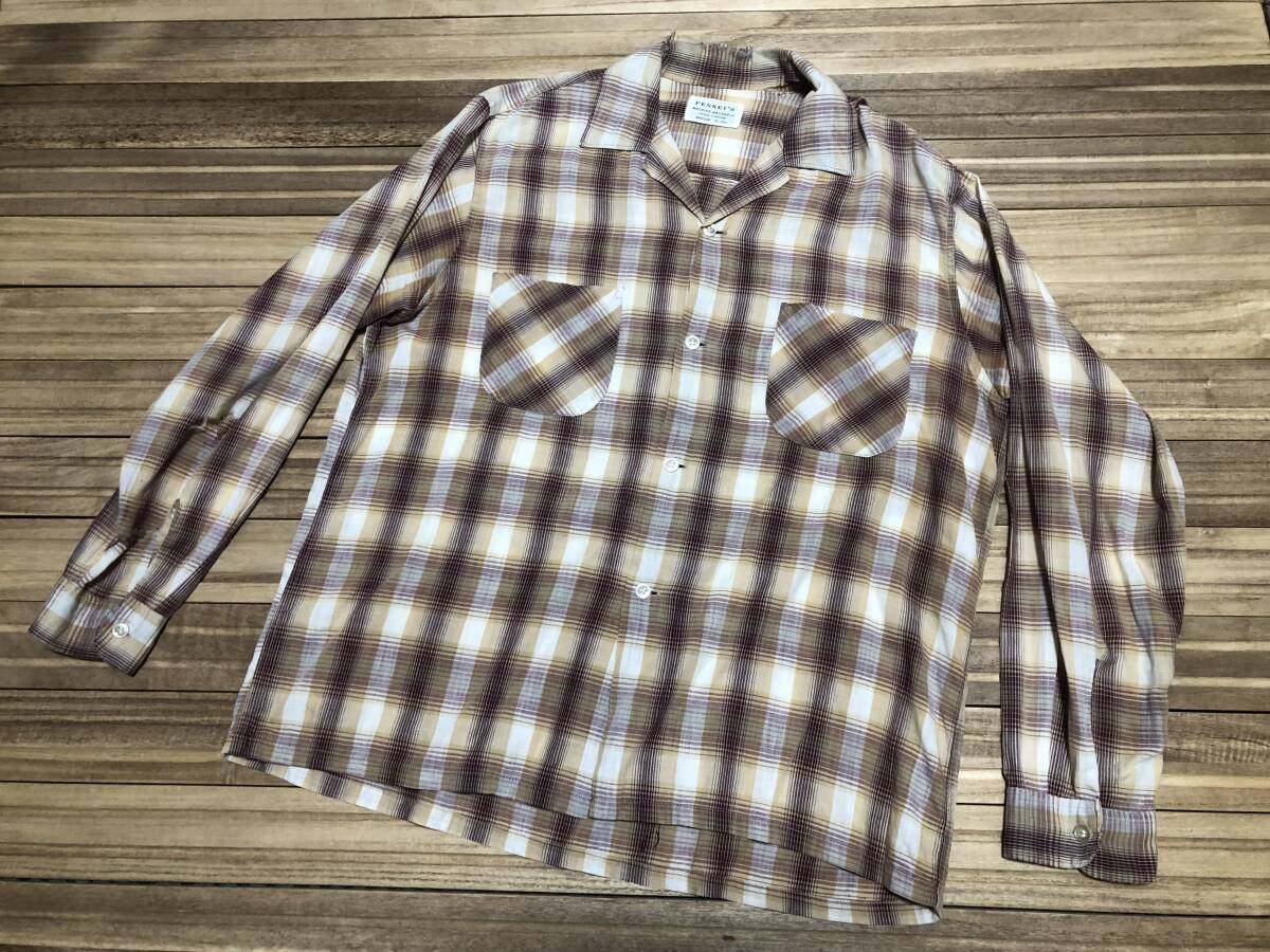 > ヴィンテージ penneys(ぺニーズ) 長袖チェックシャツ フェード シャドーチェック柄 レーヨン オープンカラーシャツ SIZE15-15 1/2