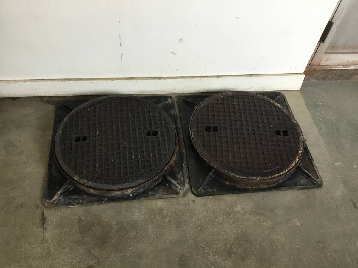 - △ v 岐阜発/ マンホール/ MHA-450-1500kg/ 2個セット/ フタ/ 台座/ 鋳物/ 中古品/ 汚れあり/ 現状品/ R7.4/19 △