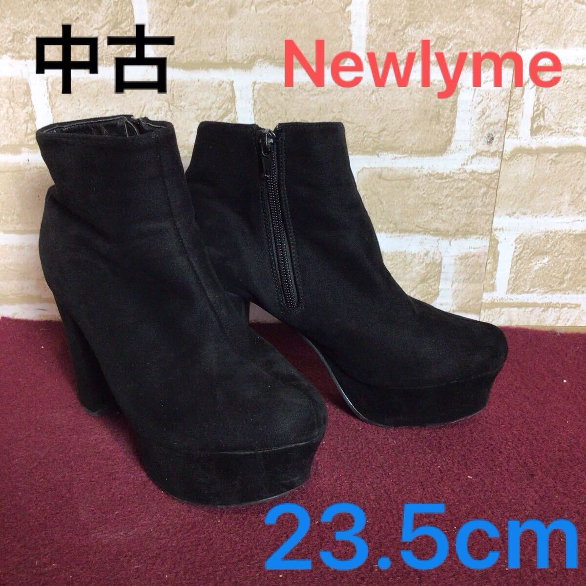 - 【売り切り!送料無料!】A-368 Newlyme!ショートブーツ!23.5cm!黒!ブラック!スエード!おしゃれ!デザイン性!柔らかい素材!中古!