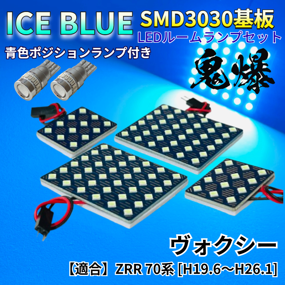 > 【アイスブルー】ヴォクシー ZRR 70 70系 VOXY 鬼爆基板 3030SMD LED ルームランプ スモールランプ 車内灯 室内灯 パーツ アクセサリ