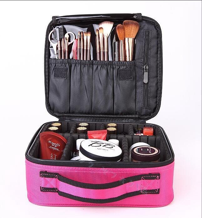 - 高品質化粧道具 化粧バッグ レッド コスメバッグ 持運び 化粧品入れ 大容量 ポーチ メイクボックス 収納ケース 小物