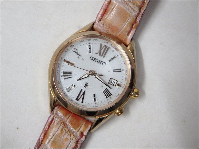 > 現状品 SEIKO/セイコー◆LUKIA ルキア/1B35-0AA0◆レディース腕時計 白蝶貝ダイヤモンド入り文字盤 ソーラー電波 デイト チタン 本体のみ