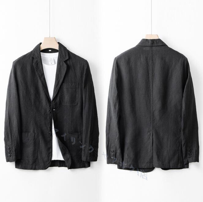 - 超レア メンズ テーラードジャケット リネン 麻 春夏 ブレザー デザイナーズ 紳士服 スーツ 無地 アウター 背広 黒 S~2XL