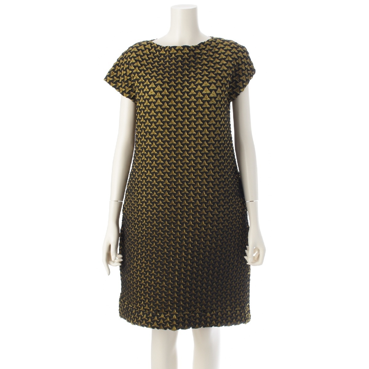 > イッセイミヤケ 15AW 3Dスチーム フレンチスリーブ ストレッチ ワンピース IM54FH513 ブラック イエロー 2【中古】