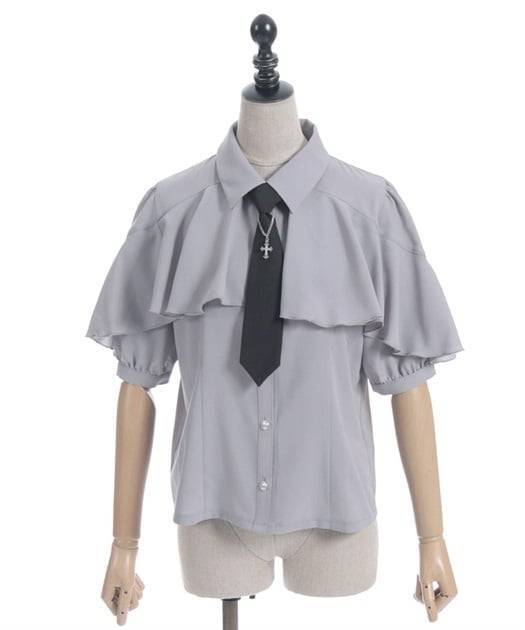 - 916◇タイ付ラッフルフリル半袖ブラウス グレー axes femme POETIQUE アクシーズ ファム ポエティック CI81X57P