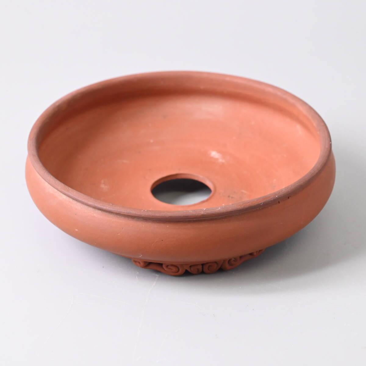 - N6915 小品盆栽鉢 豆鉢 在銘 『泥珠』 径75㎜ 高23mm 脚に欠けアリ ミニ盆栽