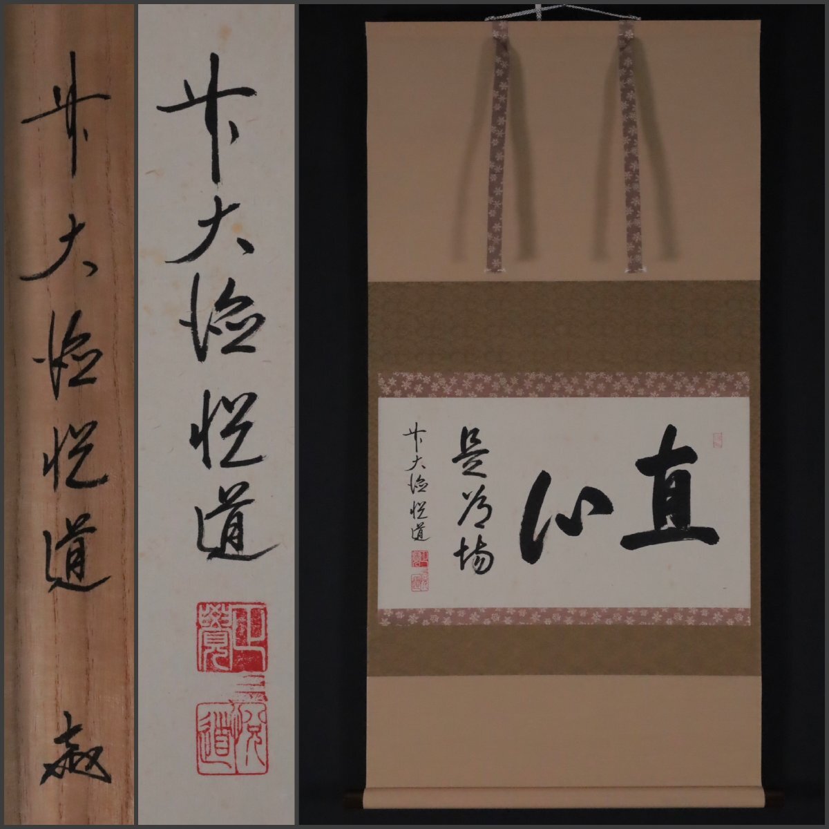 - 【模写】吉】12281 高橋悦道 書 直心是道場 共箱 小田雪窓師事 臨済宗 大徳寺 明星寺 滋賀県 仏教 茶掛け 茶道具 禅語 掛軸 掛け軸 骨董品