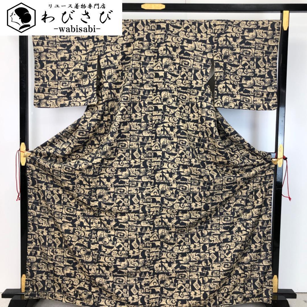 - 小紋 伝統的工芸品 〓纈柿渋染 抽象模様 濃消炭色 トールサイズ K-4605