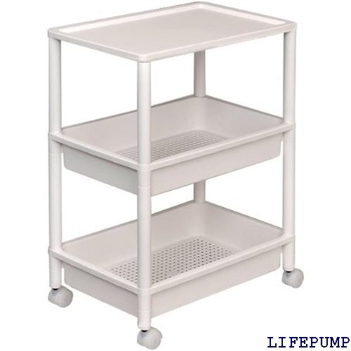 - 和泉化成 キッチンワゴン ワイドワゴンT-3段・ホワイト 3999W 8072