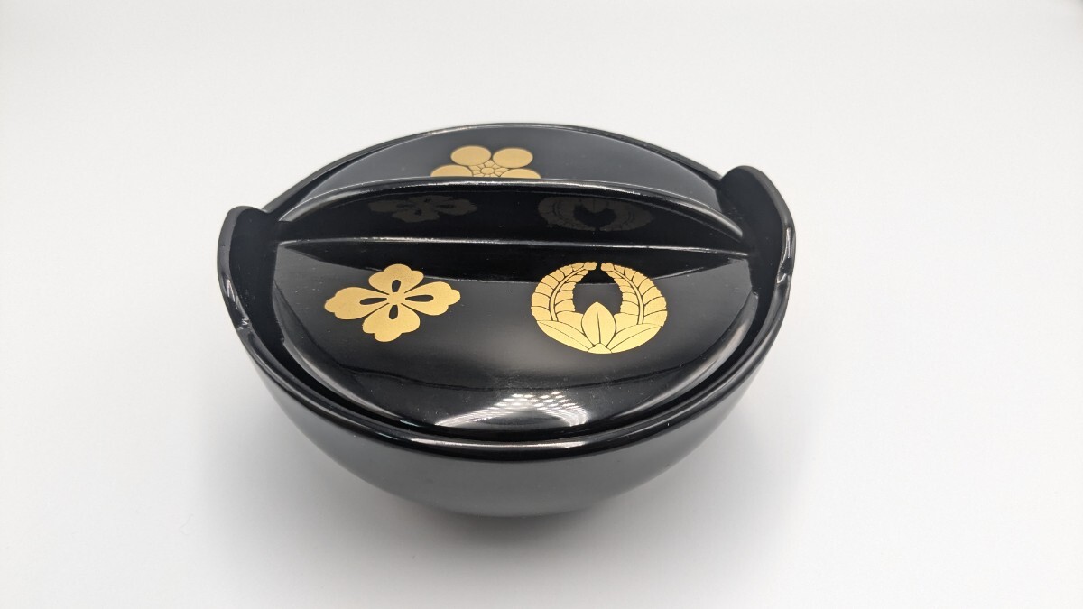 - アンティーク 茶道具 茶碗 黒 菓子器 家紋 漆器 レトロ