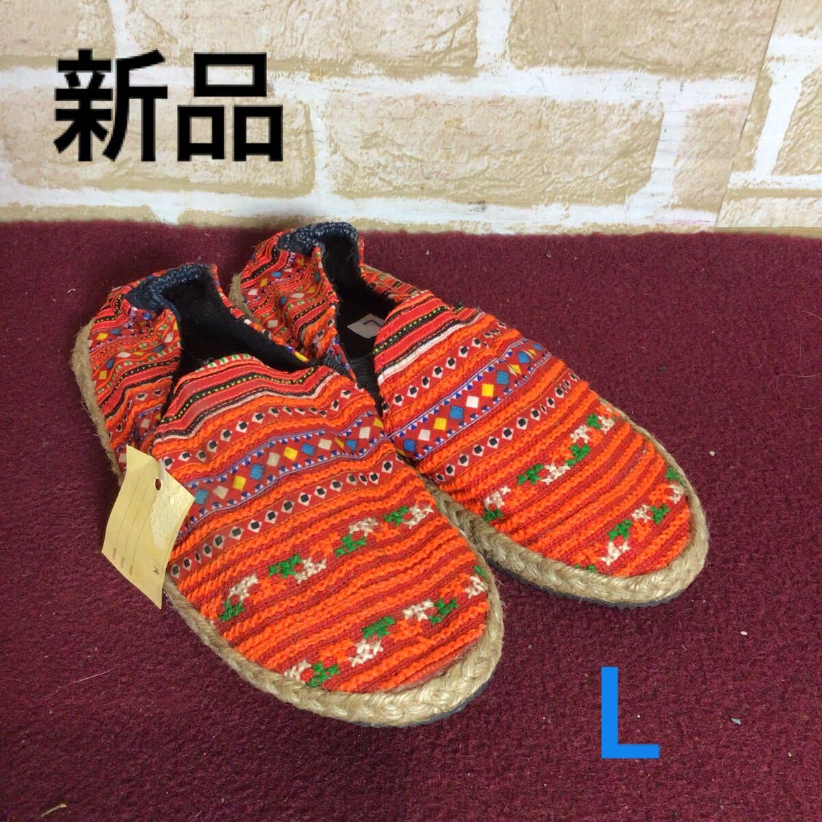 - 【売り切り!送料無料!】A-343 エスニックシューズ!ぺたんこシューズ!L !赤!オレンジ!カラフル!おしゃれ!エスニック!モン族?民俗刺繍!新品