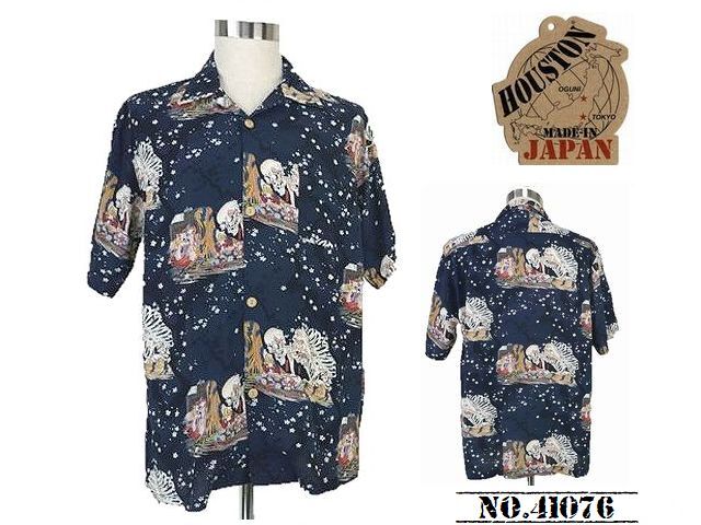 > 【送料無料 29%OFF】HOUSTON ヒューストン アロハシャツ 「歌川国芳 ・相馬の古内裏」・日本製・ NO.41076 NAVY_Mサイズ