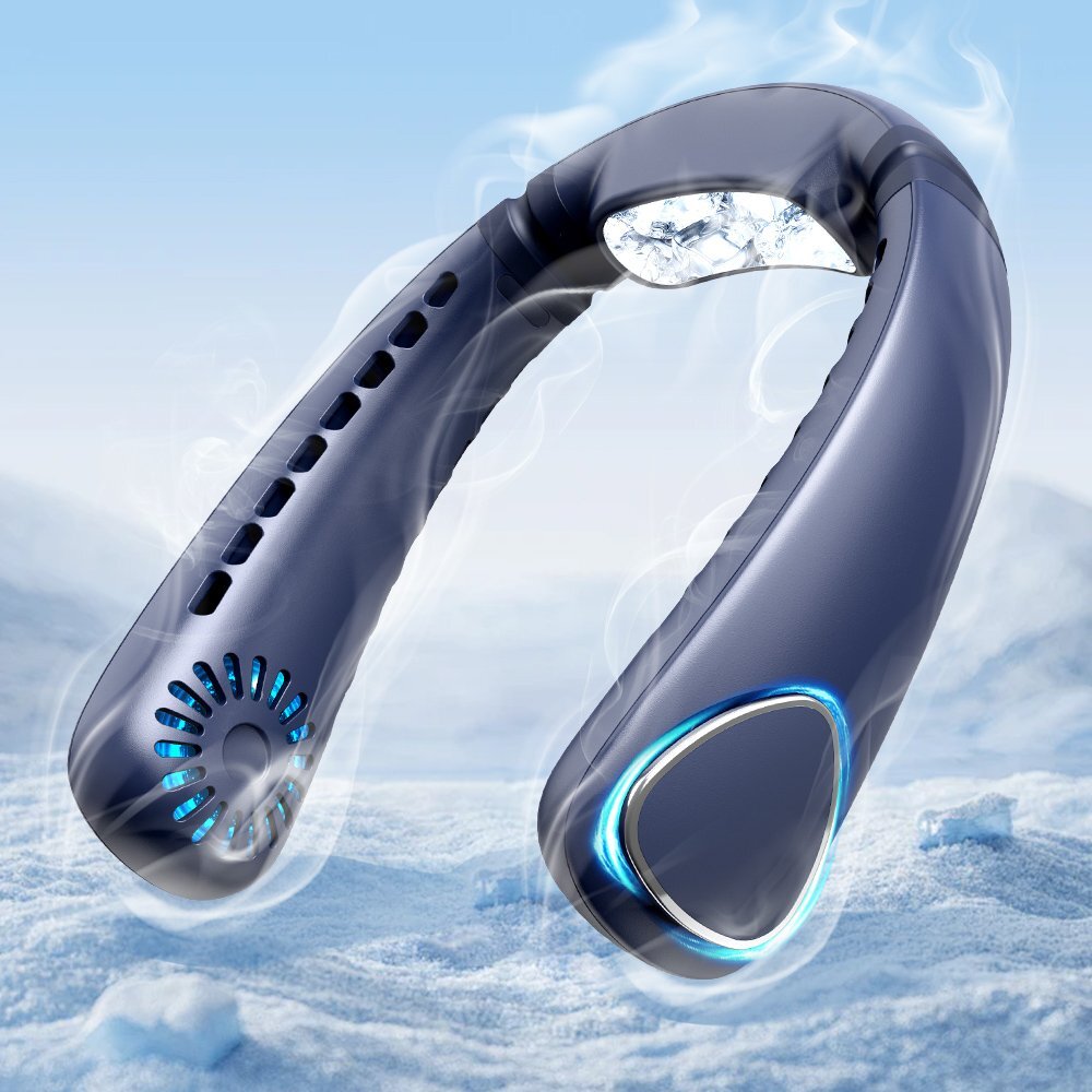 - 首掛け扇風機 ネッククーラー 冷却プレート 扇風機羽なし 軽量 冷感 3段階風量 夏用品 9000mAh 軽量 静音 コンパクト 熱中症対策 ネイビー