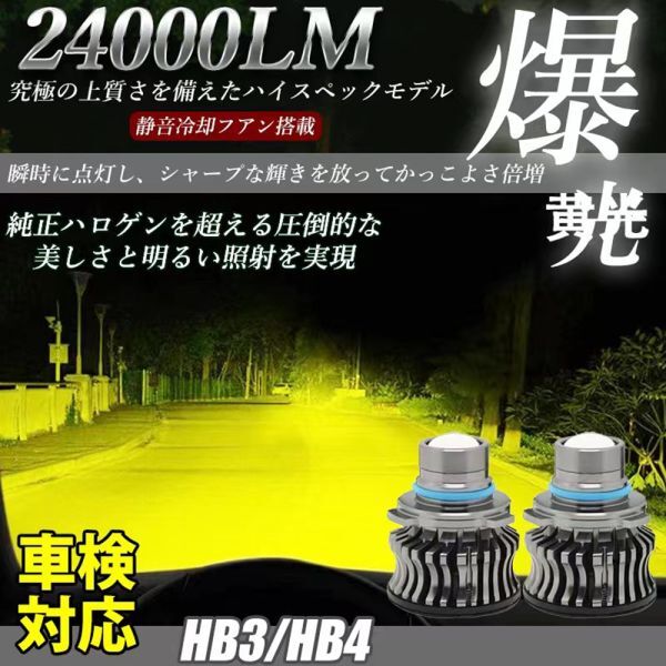 - LED フォグランプ 24000LM 黄色 イエロー 3000K HB3/HB4 LED バルブ 車検対応 【安心保証】2個セット LF-056