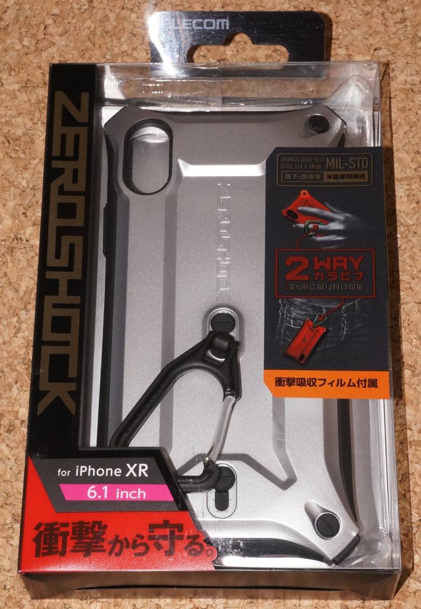 > ☆新品★ELECOM iPhone XR ZEROSHOCK ゼロショック カラビナ シルバー