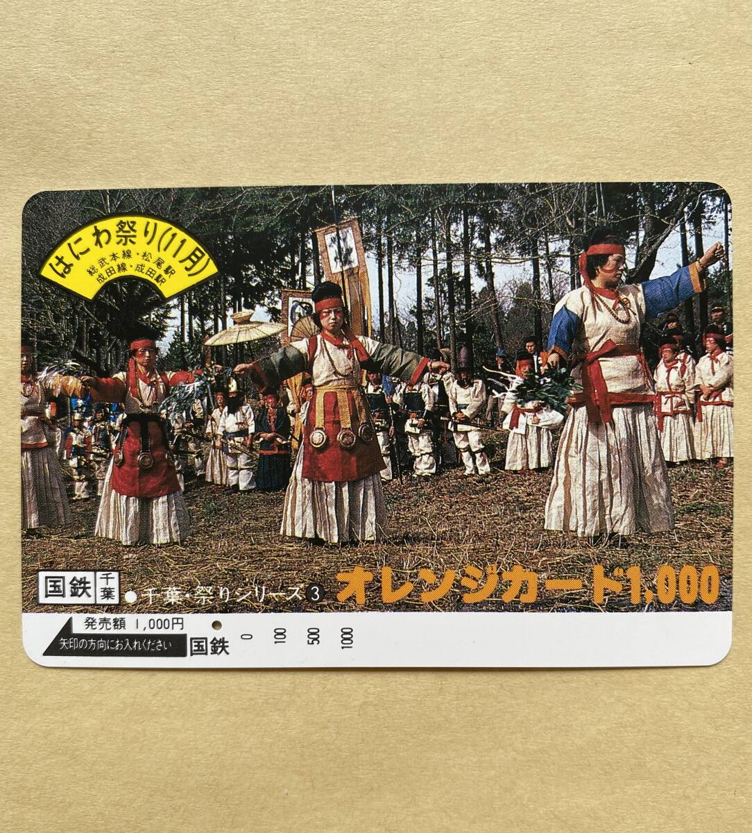 - 【使用済】 オレンジカード 国鉄 千葉・祭りシリーズ ③ はにわ祭り(11月) 総武本線・松尾駅 成田線・成田駅