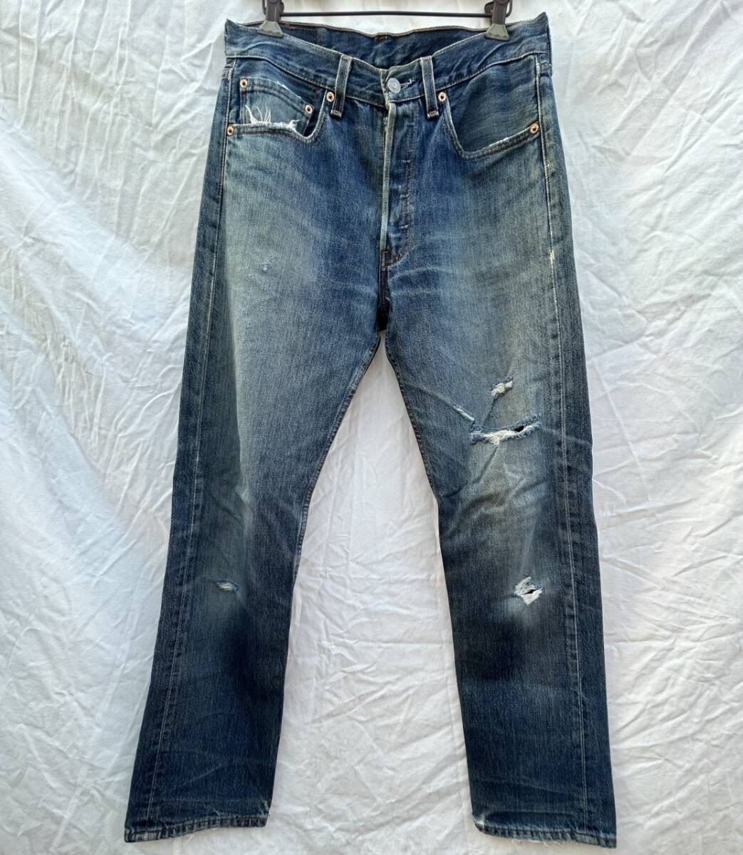 > 90s 米国製 USA製 LEVIS LEVI'S リーバイス 501 XX インディゴ ダメージ デニム ジーンズ VINTAGE ビンテージ 紙パッチ W31 L32 グランジ
