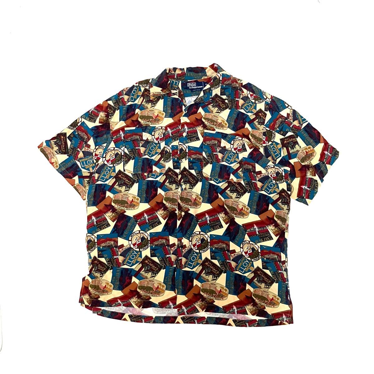 - XL ポロ ラルフローレン 半袖 開襟 シャツ ホテル柄 総柄 レーヨン 90’s 90年代 ハワイアン アロハ オープンカラー ヴィンテージ Polo