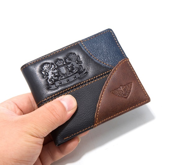 - 二つ折り財布 新入荷 高級 本革牛革 メンズ 小銭入れあり ビンテージ加工 彫りデザイン カード収納 紳士 アメカジ /黒