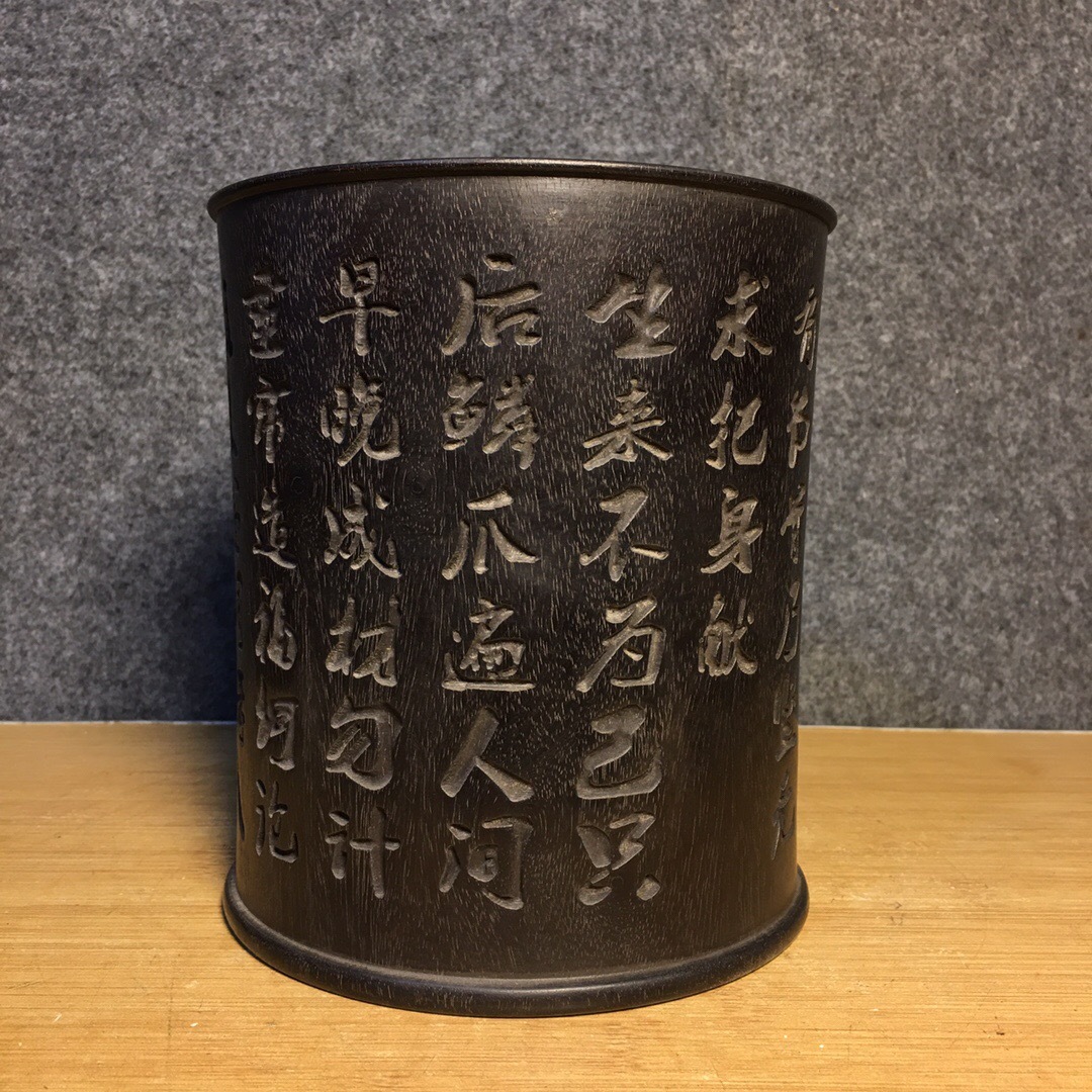 - 【超珍館蔵】黑檀木製 細密彫 刻字 筆筒 置物 賞物 古賞物 古美術品 稀少珍蔵品