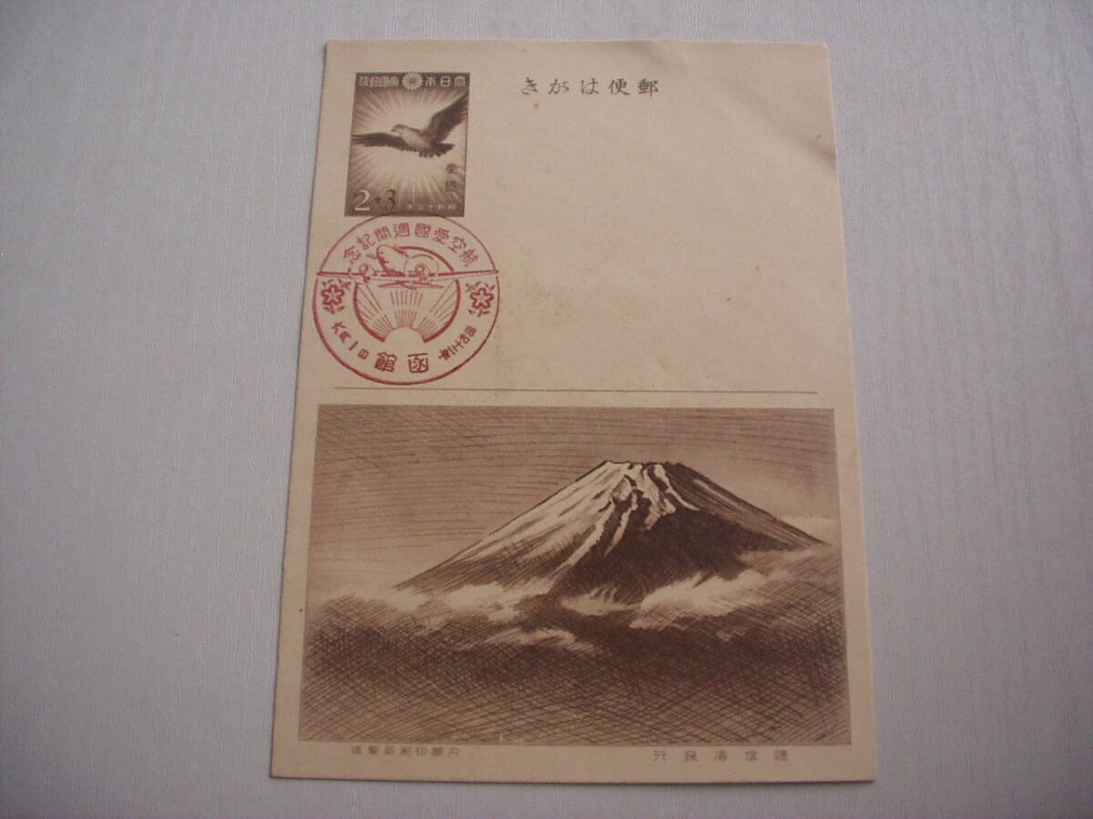 - はがき1枚 航空愛国週間記念 昭和12年 函館 スタンプ 切手3枚