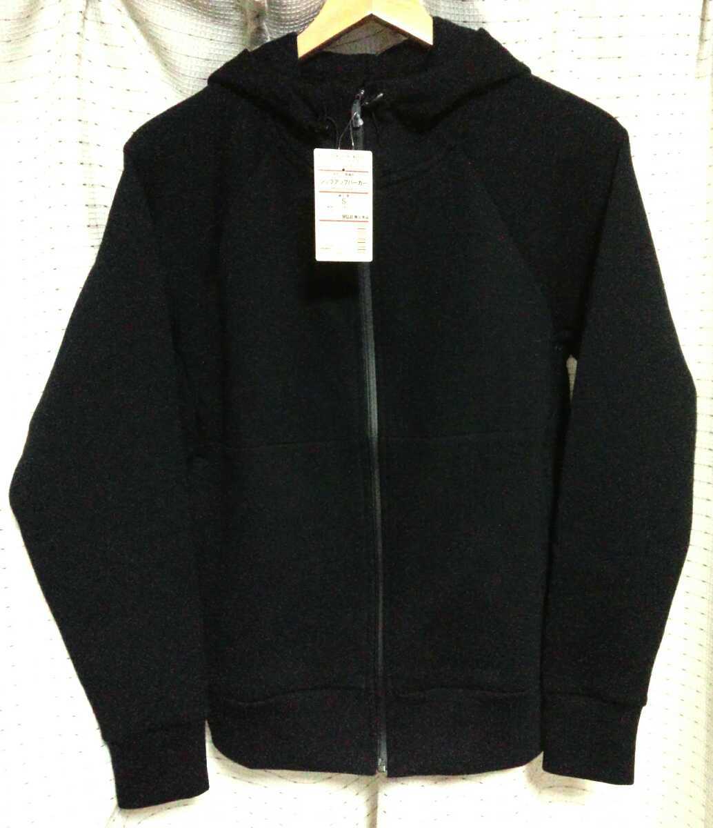 > SALE!! 無印良品S撥水二重編みジップアップパーカBLACK撥水 二重編みMENS PARKAジップアップパーカMUJI黒 ブラック オーガニックコットン