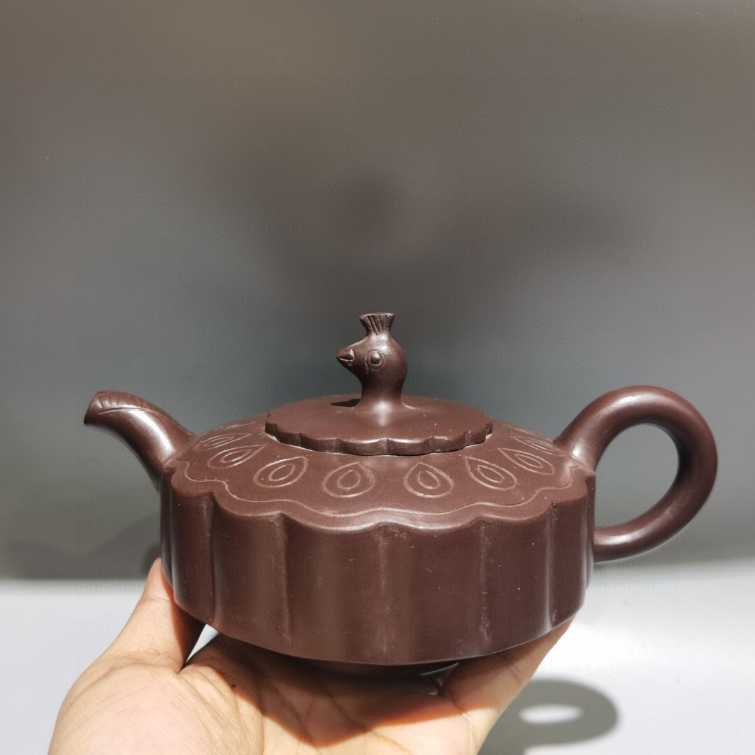 - 『館蔵珍品 紫砂壺 孔雀壺 顧邵培款 紫泥 紫砂壺』置物 賞物 貴重物品 収蔵品 中国古美術