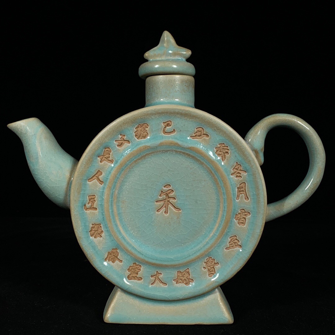 - 『館蔵珍品 宋 古陶瓷品 汝窯 銘文扁壺』置物 賞物 貴重物品 収蔵品 中国古美術