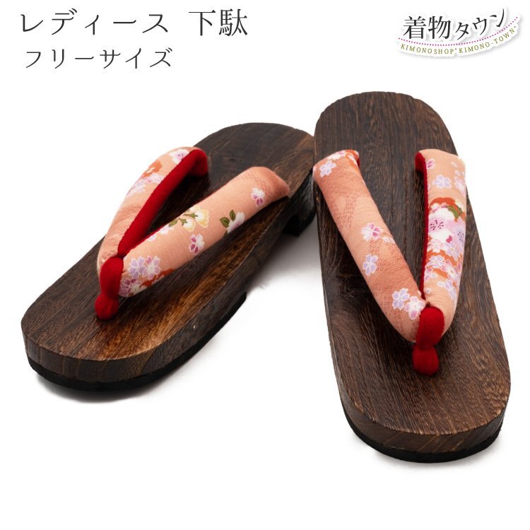 - ☆着物タウン☆ 下駄 レディース 女性用 フリーサイズ ピンク 桜 桐 浴衣 焼き桐 和装小物 夏用 夏物 夏 げた geta-00035