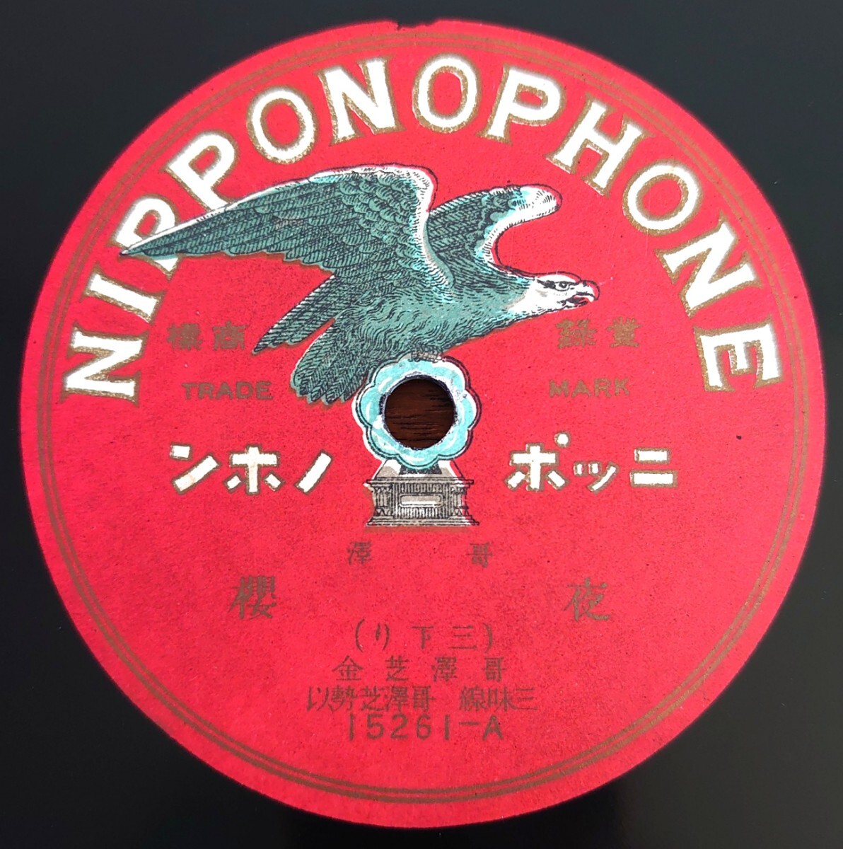 - 【SP盤レコード/縁微欠薄小ヒビ】NIPPONOPHONE 哥澤/夜櫻-夜桜(三下り)/月夜がらす/哥澤芝金