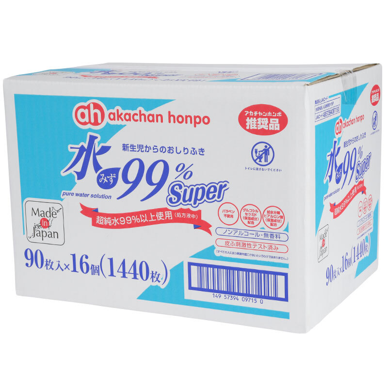 - アカチャンホンポ 赤ちゃん本舗 水99%Super 新生児からのおしりふき 90枚×16個