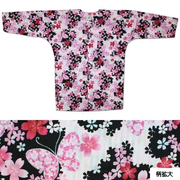 - お祭用品/肉襦袢 鯉口シャツ 蝶ラメ 214ピンク/黒 大(大人用)