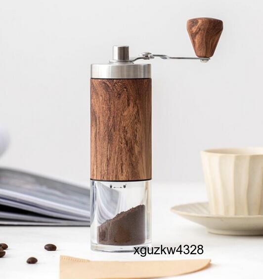 - 手挽きコーヒーミル コーヒーミル 豆挽き 木目調 ガラス調 アウトドア キャンプ 粗さ調節 コンパクト 丸洗い/XS146