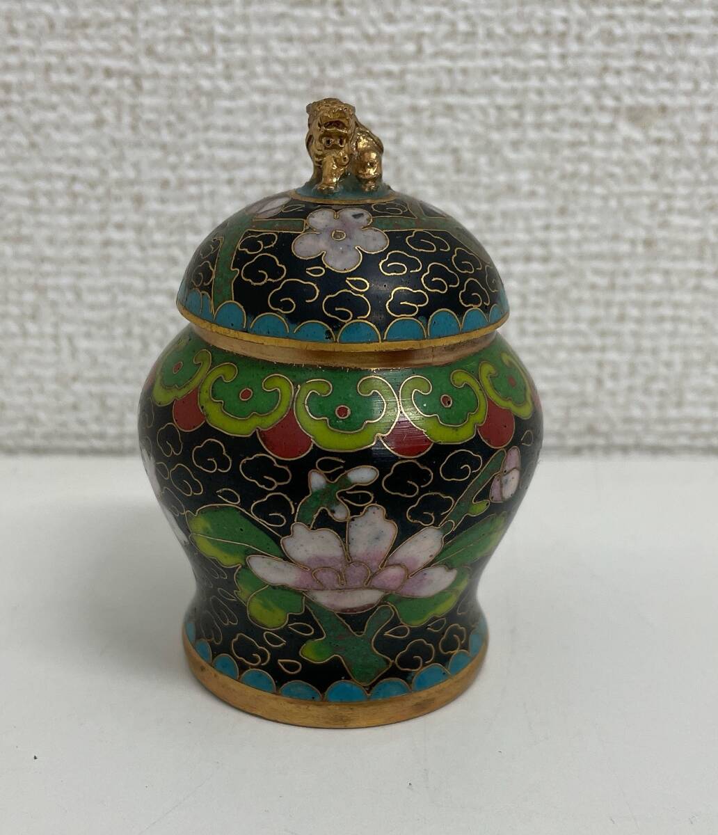- 【時代 中国七宝 獅子摘 飾り壺】高さ7cm/沈香壺/七宝焼き/唐物 中国古玩 中国美術/A74-232