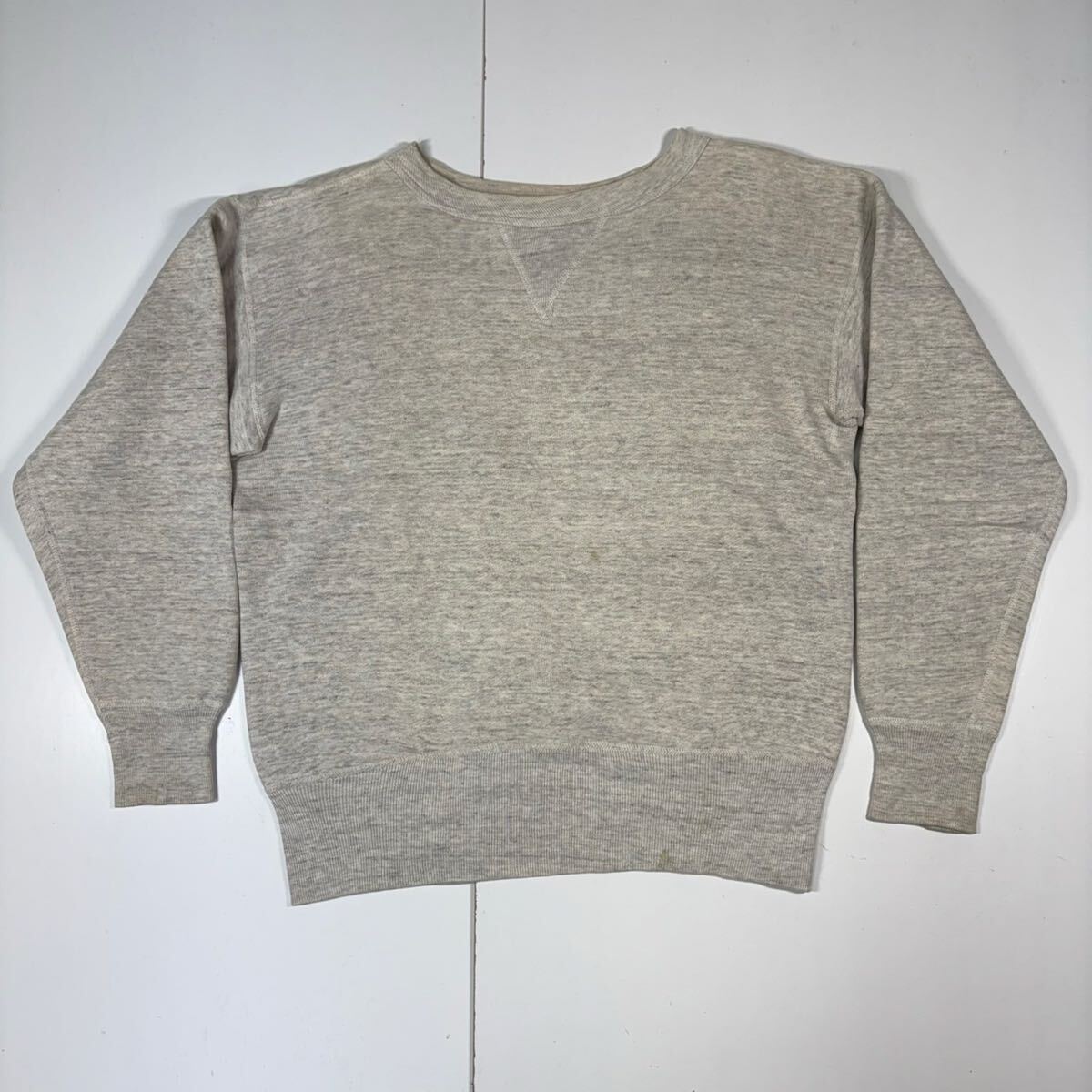 - 50s Vintage Sweat Gray 50年代 ビンテージ 無地 スエット 霜降り グレー 前V 張り付け ビンスエ T1163