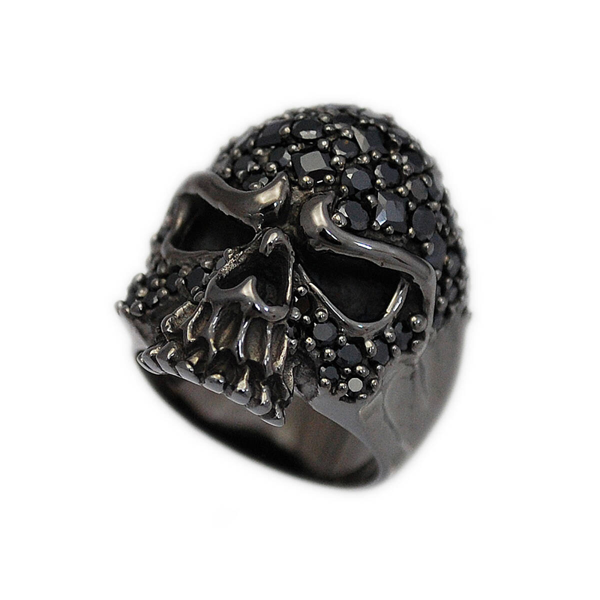 - 20号 スカルドクロブラックロジウムメッキ925シルバーリング 925刻印あり HI-R07