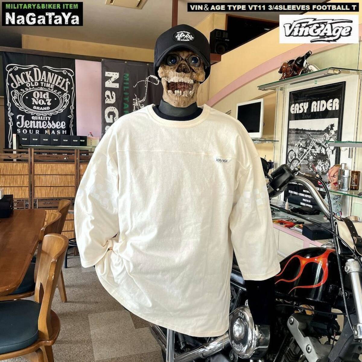 - VIN&AGE ビンアンドエッジ TYPE VT11 七分袖 セミワイド フットボール Tシャツ ナチュラル Mサイズ FOOTBALL チェッカープリント