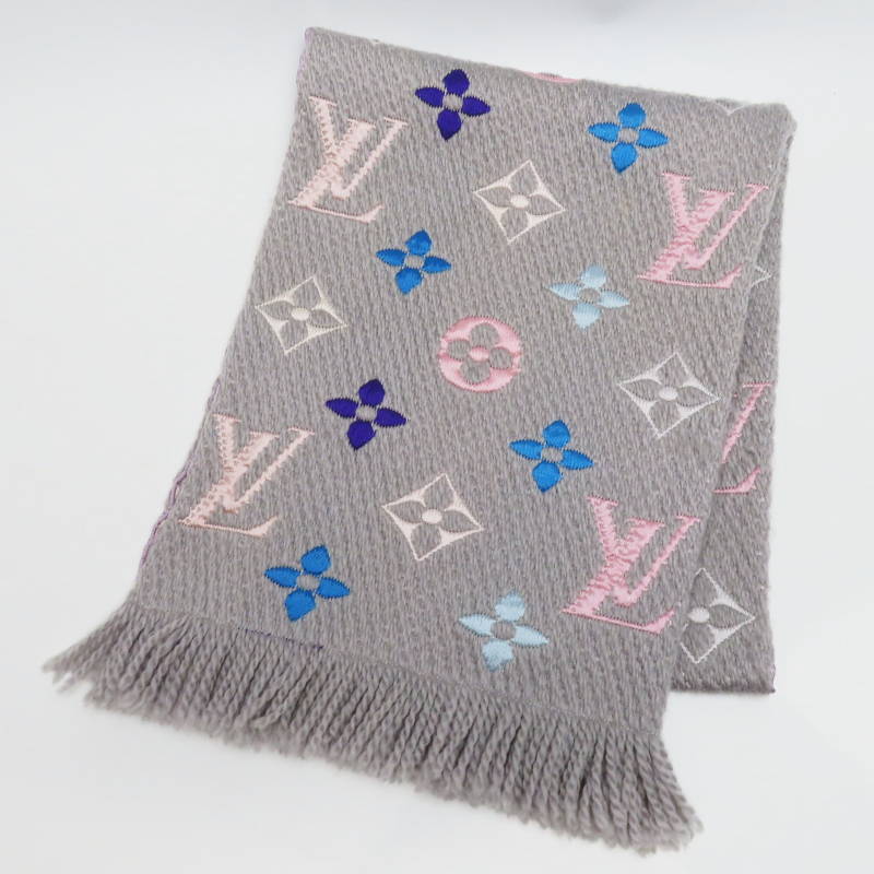 > S04-k170 LOUIS VUITTON ルイヴィトン モノグラム エシャルプ・ロゴマニア レインボー ウール/シルク マフラー グレー/マルチカラー M75874