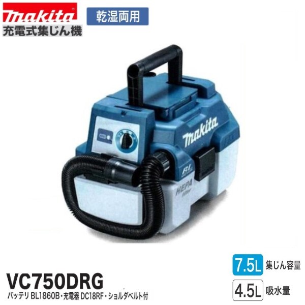 > マキタ 18V 充電式集じん機 VC750DRG (本体+6.0AhバッテリBL1860B+充電器DC18RF)【乾湿両用】[集塵機]■安心のマキタ純正/新品/未使用■★
