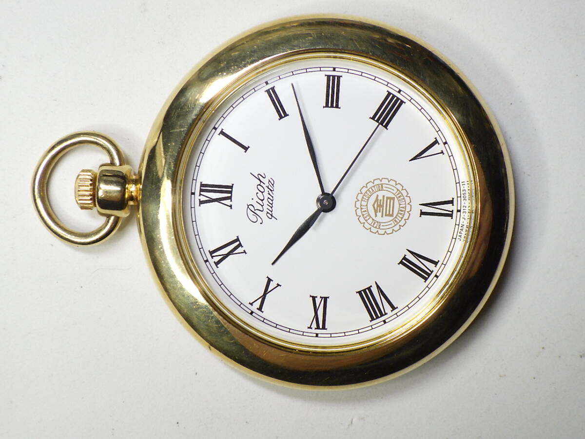 - 2505 リコー 金色 懐中時計 5D10 GJB-b 白文字盤 美品 電池交換済