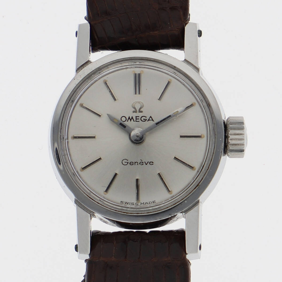 > OMEGA オメガ ジュネーブ シルバーダイヤル SS/レザー 手巻き レディース【128009】