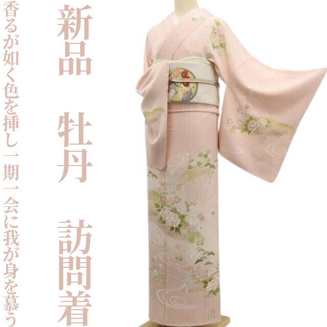 - tomihisa 新品 牡丹 着物 正絹“香るが如く色を挿し一期一会に我が身を慕う”仕付け糸付 訪問着 5711