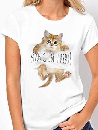 > Tシャツ レディース 半袖 猫柄 綿100% イラスト シンプル ネコ ねこ トップス (2XL)