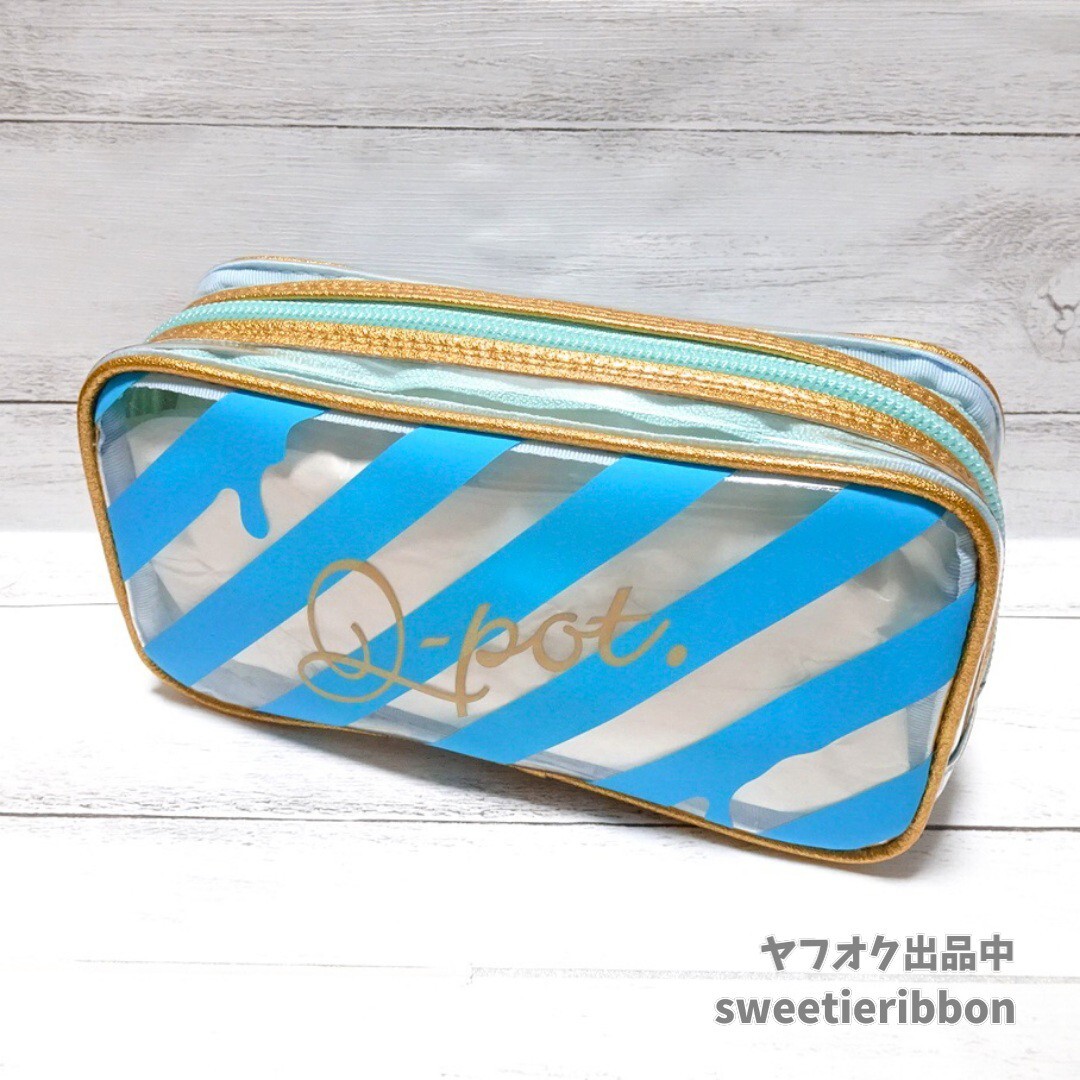 > 2392 送料無料 新品未使用 キューポット アイスるアイス クリアポーチ 約9.5×18×5.5cm ブルー / Q-pot ロゴ入り ポーチ ペンケース