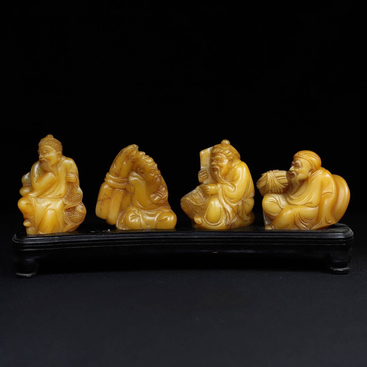 - 唐物 清 寿山石 漁樵耕讀 人物紋 印章一套 極細工 中国美術品 時代物 中国古玩 骨董品 D65