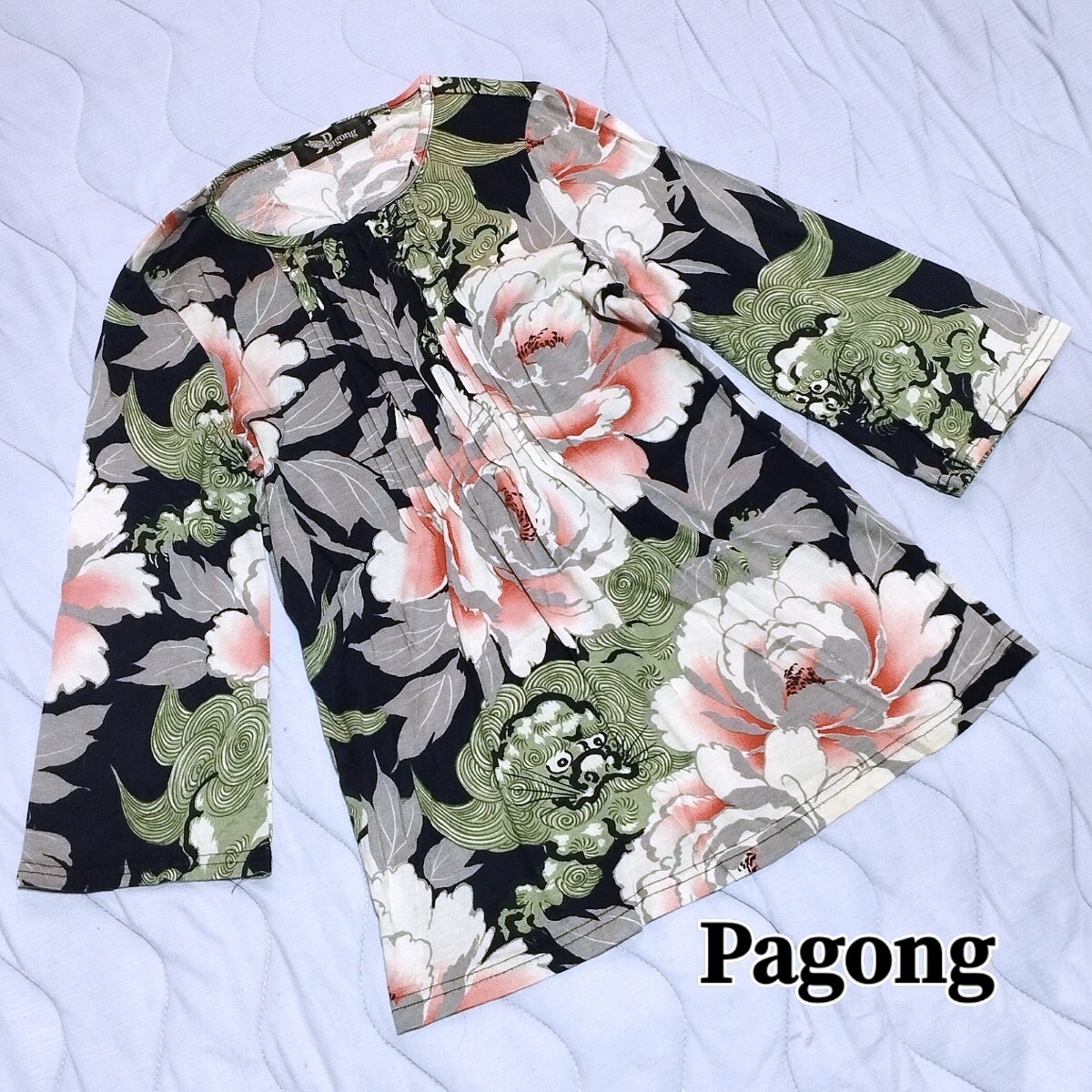 - パゴン pagong カットソー Tシャツ 唐獅子牡丹 和柄 花柄 獅子